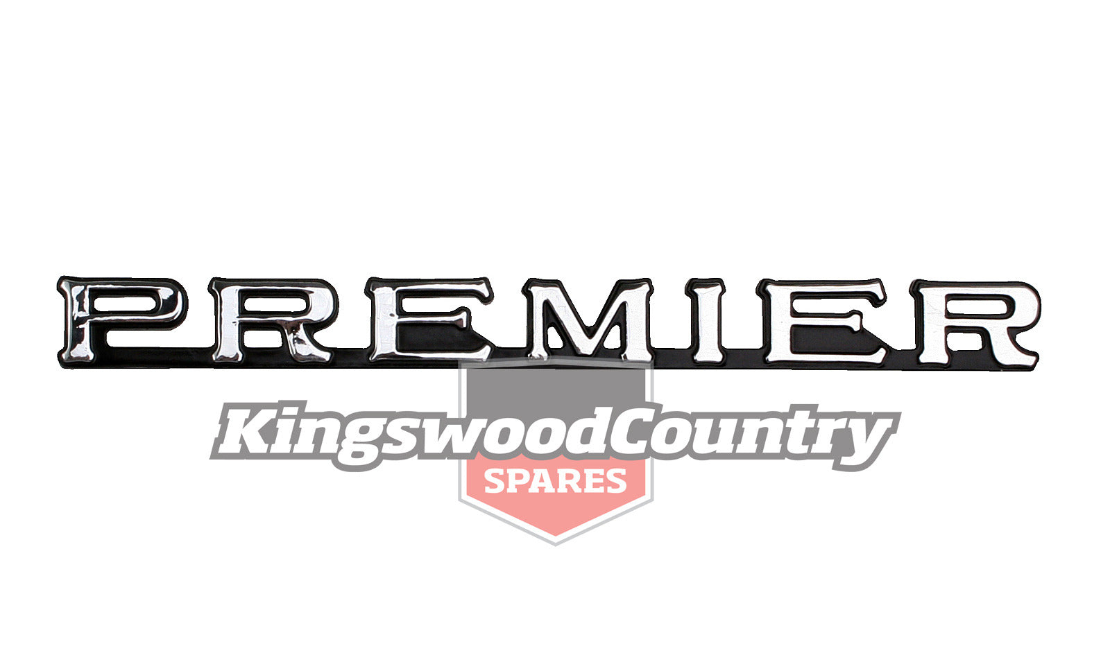 “Premier” Alloy die cast chrome finish Badge (Name plate/Emblem) which fits the fender (guard), tailgate or boot Lid (Deck lid) This badge is supplied with barrel clips to go into the panel, to hold the badge to the car.