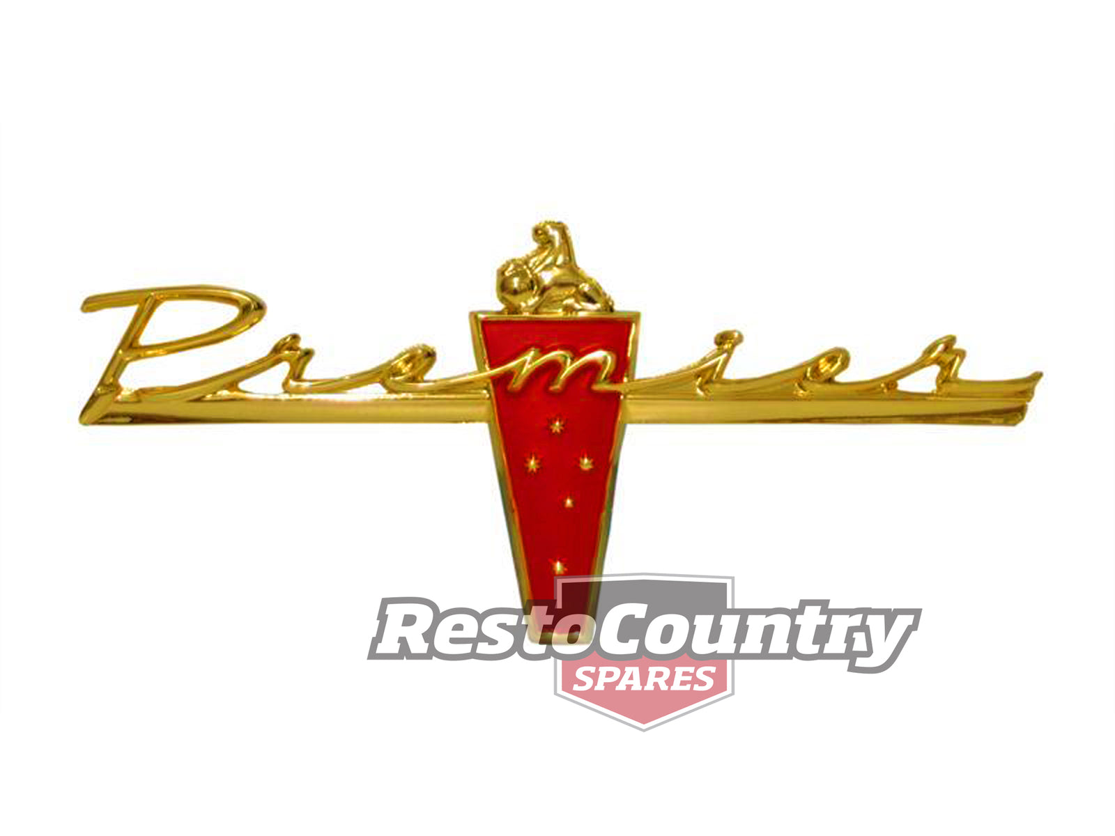 “Premier” Alloy die cast badge (Name Plate/Emblem), finished in gold colour (scripture) badge (Name Plate/Emblem) with a red inlay in the shield that goes on the inside of the door panel. This badge is supplied with clips to hold the badge to the inside door panel